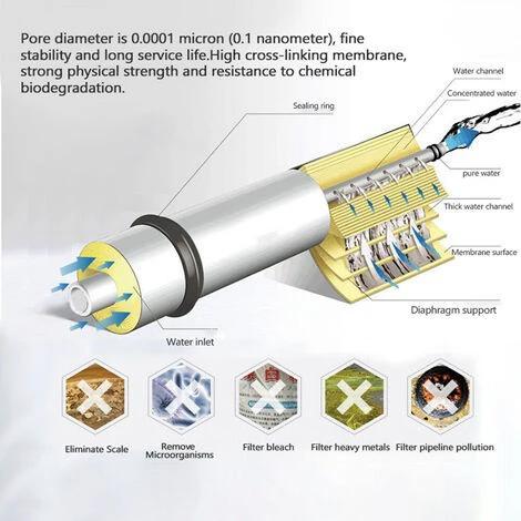 Diametro dei pori: 0,0001 micron (0,1 nanometro)