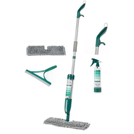 Prodotto essenziale per la pulizia di molteplici superfici, dai pavimenti duri alle piastrelle, questo mop spray Antibac è in grado di uccidere efficacemente batteri e virus. È possibile creare il proprio sterilizzatore riempiendo il flacone da 400 ml con acqua e sale, quindi collegandolo in modo che sia caricato elettricamente, per una pulizia rispettosa dell’ambiente. Completo di un dosatore, un accessorio per la pulizia dei vetri e di un mini spruzzatore, questo mop può essere usato come unità portatile o come mop per pavimenti. Ingredienti