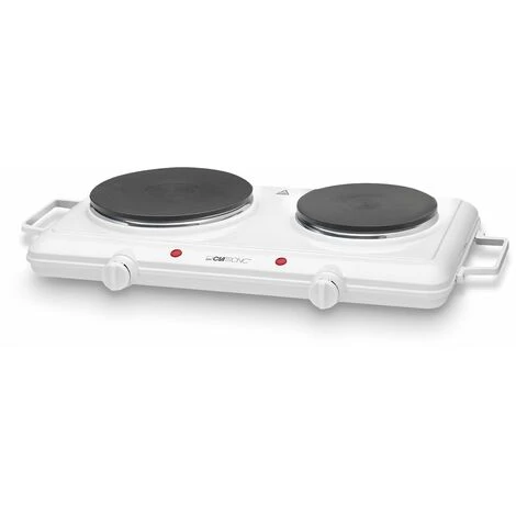 Clatronic DKP 3583 Double hotplate 2 hotplates 1 x approx. 180 mm diameter. 1500 watt 1 x approx. 150 mm diameter. 1000 watt 2 continuously variable thermostats 2 control lamps Heat-resistant finish Sturdy design Power supply 230 V. 50 Hz. 2500 W weight 3.85kg size 49.5 x 9.5 x 32 cm