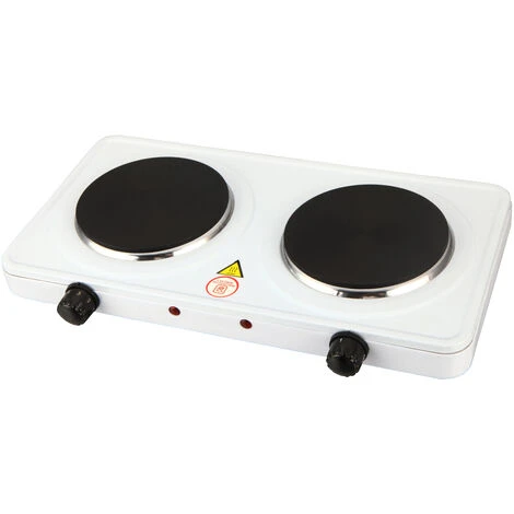 struttura in metallo, piastra in ghisa. Termostato regolabile. Spia luminosa di controllo. Diametro piastra 15,5+15,5 cm Potenza 1000+1000 W Dimensioni cm 43x22x7,5h