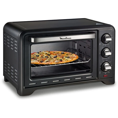 Moulinex FORNETTO OPTIMO 19L. Capacità netta del forno: 19 L, Colore del prodotto: Nero, Tipo di controllo: Manopola. Potenza del forno: 1380 W. Larghezza: 370 mm, Profondità: 535 mm, Altezza: 361 mm Optimo 19 L: il forno facile e compatto Con il forno ventialto Optimo 19L, cucina e riscalda tutti i tuoi piatti con facilità. Il suo semplice termostato meccanico, timer e le sue funzioni rendono più semplice la cottura, mentre le 6 modalità di cottura ti permettono di cucinare ogni tipo di ricetta: convenzione, convenzionale, grill, impasti, bagnomaria e scongelamento. è inoltre caratterizzato dalla griglia reversibile e 6 livelli di cottura, tutto n 19L di capacità. Il suo stile vintage e la sua dimenzione compatta lo rende perfetto per ogni cucina.