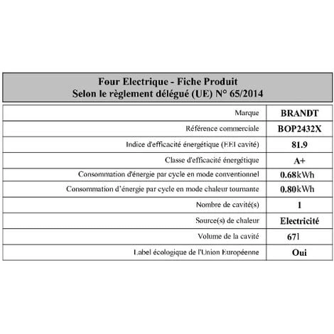 Indice di efficienza energetica (EEI intera cavità): 81,9.