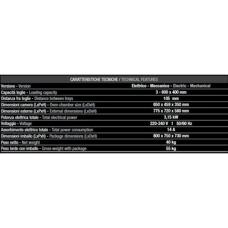 Forno Tecnodom 600 Meccanico Porta A Ribalta Meccanico A Convezione, Senza Grill, 3 Teglie O Griglie 600 X 400 Mm