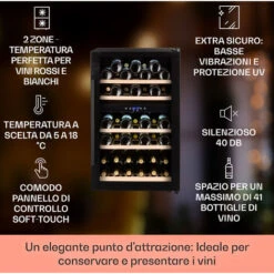 Klarstein Barossa 40 Duo – Frigorifero Per Vini, 2 Zone, 41 Bottiglie, Porta Di Vetro, Touch, LED
