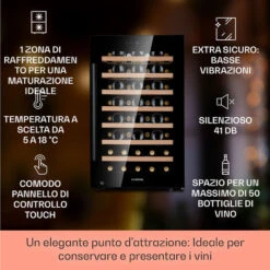 Klarstein Barossa 50 Uno – Frigorifero Per Vini, 1 Zona, 120 Litri/50 Bottiglie, Display Touch
