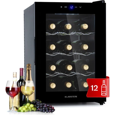 Klarstein Cantinetta Vino, Cantinetta Vino Refrigerata a Zona Singola per Interno/Esterni, Frigo Bar, Cantina Vino con Vetrina, Mini Bar con Protezione UV, Frigo Vino con Touch Pad e Spazio per Champagne