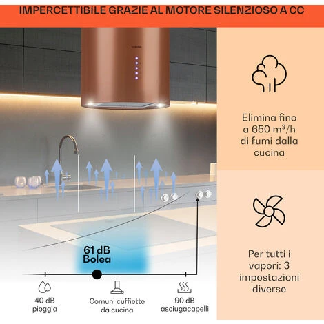 PER LA TUA CUCINA A ISOLA: Sblocca il potenziale della tua cucina con questa cappa aspirante per cucina a isola. Grazie all’illuminazione LED per illuminare i tuoi cibi in cottura, è la cappa isola migliore per eliminare fumo e odori in cucina.
