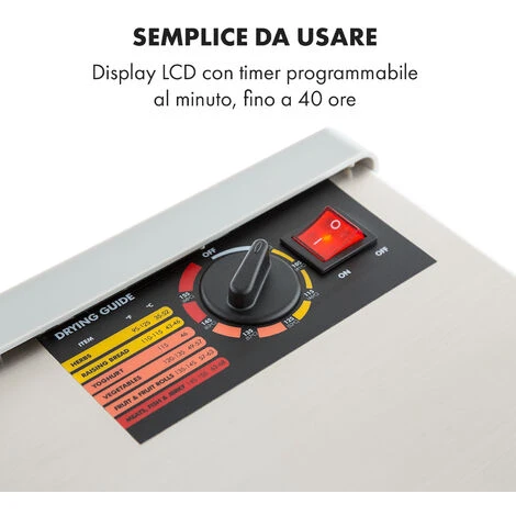 - Distanza tra i ripiani di essiccazione: ca. 2,5 cm