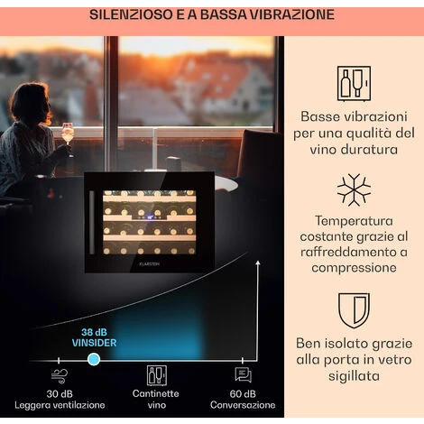 OPERATIVITA’ SILENZIOSA: Il motore silenzioso assieme all’elegante design rende la nostra cantinetta vino verticale il miglior frigo vino per la conservazione professionale di vino a casa tua, nei bar, ristorante, sale di degustazione e altro ancora.