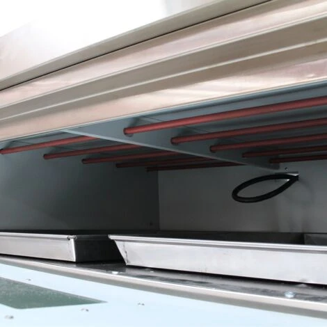 Può raggiungere una temperatura di 400°C, caratteristica che lo rende perfetto per scopi commerciali, inoltre le rinforzate porte in acciaio forniscono un semplice accesso ad ogni ripiano e al tempo stesso mantengono costante la temperatura. Il forno è pre-impostato per essere monofase, ma può essere convertito in trifase. Chiedi a un’elettricista qualificato ulteriori consigli e aiuto quando converti il forno monofase in un forno trifase. Il forno necessita di un filo da 6mm per il collegamento.