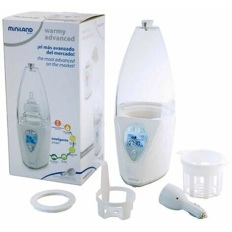 Warmy Advanced – Scaldabiberon e Sterilizzatore 2in1 di Miniland riscalda e sterilizza i biberon utilizzando solo vapore acqueo ad alta temperatura, il metodo più sicuro e naturale che ci sia. É indicato soprattutto per scaldare il latte, sia materno che formulato, inoltre Warmy Advanced è progettato per calcolare automaticamente il tempo di funzionamento necessario, in base alla temperatura iniziale del liquido e al volume degli alimenti. La confezione include anche un adattatore per l’utilizzo in auto.