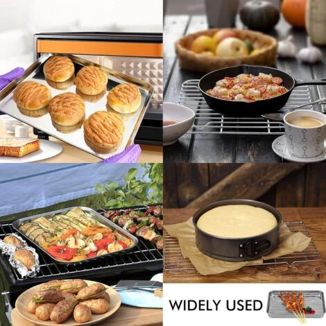 - [Qualità eccellente] Le teglie e la griglia di raffreddamento sono realizzate in acciaio inossidabile di qualità. può essere utilizzato per alimenti, che è forte e antiruggine A ripetutamente, non si deforma ed è sicuro da indossare. usa.