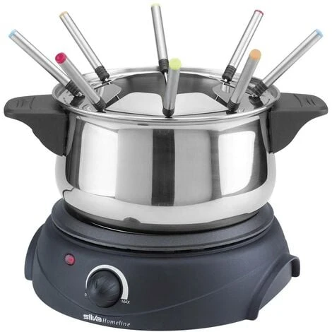 Perfetto per le occasioni speciali: Che si tratti di Natale, di capodanno o di compleanni, con la fonduta Silva Homeline potrete stuzzicare i vostri ospiti con un cibo delizioso, semplice e gustoso. La fonduta non può essere utilizzata solo per la carne, è Ideal anche come fonduta di cioccolato e formaggio. Grazie alla protezione da surriscaldamento, non dovrete preoccuparvi di surriscaldarsi durante l’uso. Inoltre, il dispositivo è dotato di una protezione antischizzo in acciaio inox. L’inutile iniezione di grasso è quindi un ricordo del passato. Grazie alle 8 forchette in acciaio inox in dotazione, l’apparecchio è adatto anche per gruppi più grandi. Con la fonduta Silva Homeline potrete dare ai vostri ospiti un pasto veloce, semplice e gustoso sul tavolo. Inoltre, il termostato regolabile in continuo consente di impostare facilmente la temperatura ideale per i vostri ingredienti. Anche la sicurezza è garantita – grazie alla protezione da surriscaldamento non dovrete preoccuparvi che durante l’uso potrebbe surriscaldarsi. La protezione antischizzo e le impugnature termoisolanti garantiscono una maggiore sicurezza. Testo tradotto automaticamente